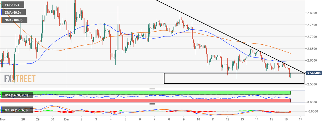 EOS is hovering slightly above $2.50 support after defending a critical support area. It is becoming apparent that this year cryptocurrencies will break the holiday surge streak. In December 2017, cryptocurrencies experienced their biggest bull rally. Consequently, last December, cryptos not only stopped the year-long downtrend, but also became the stepping stone for the rally that ended in June 2019.