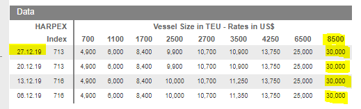 Source: Harper Peterson & Co, Harpex Index, 27 December 2019