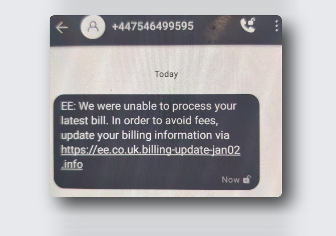 Can you spot a difference between ‘ee.co.uk’ and ‘ee.co.uk.billing-update-jan02[.]info.’? Probably not that much. If I were you, I would have thought that the later link belonged to the same domain. So, if you had an account on ‘ee.co.uk’ you might have fallen into the trap of this scammer.