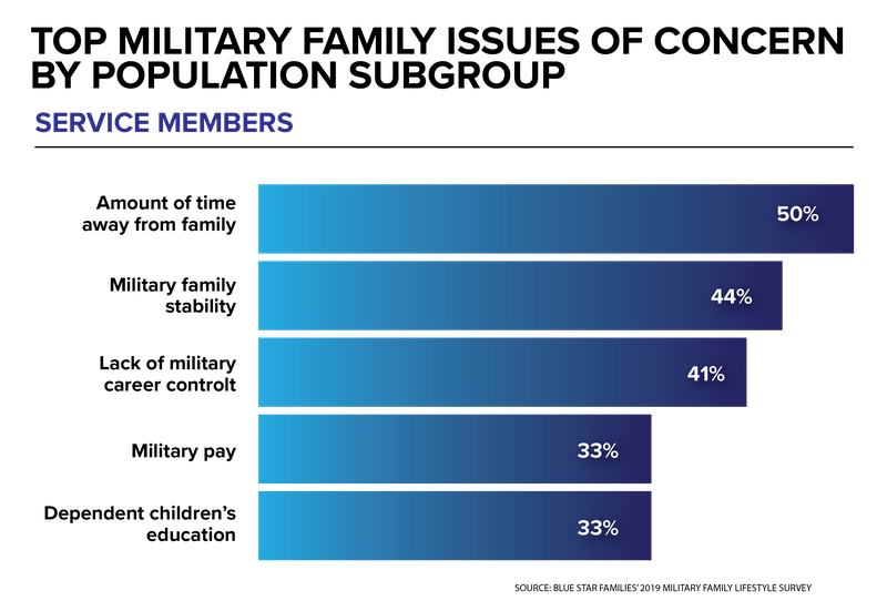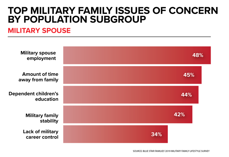 The most important trend the survey shows is the continued importance of family stability and quality of life, said Jessica Strong, senior research manager for Blue Star Families. The top issues related to this are time away from family, spouse employment and underemployment, child care availability and affordability, the stress of relocation.