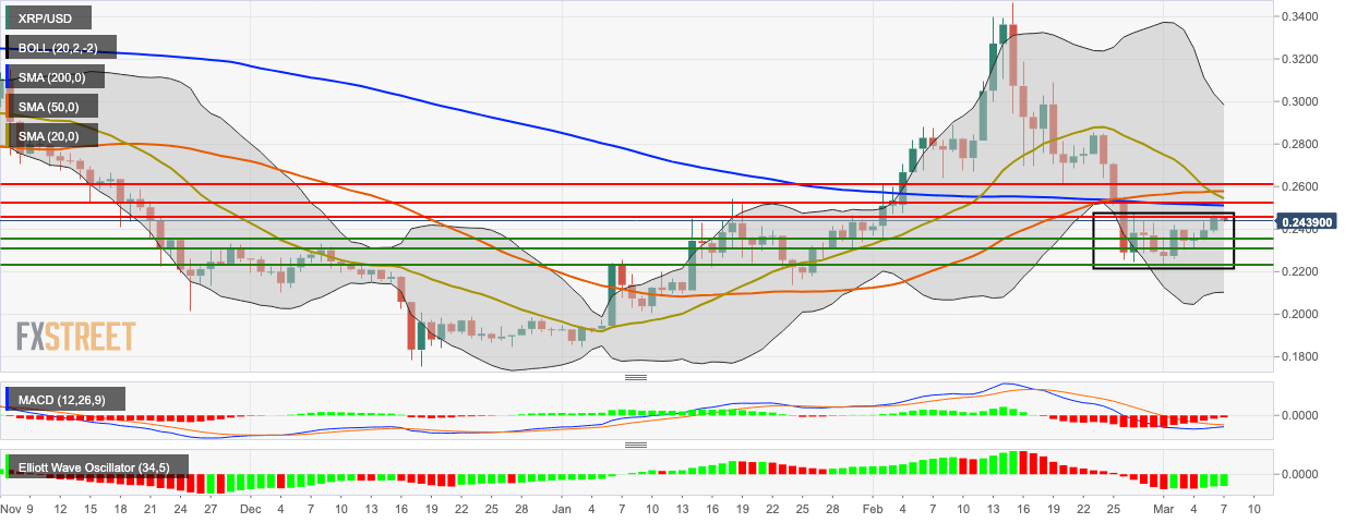 - XRP/USD must overcome resistance at SMA 200 to trend above the $0.251 level.