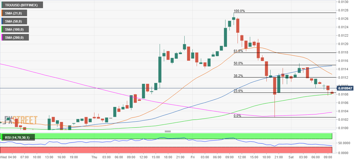 - TRX/USD resumes correction from weekly highs on Saturday.