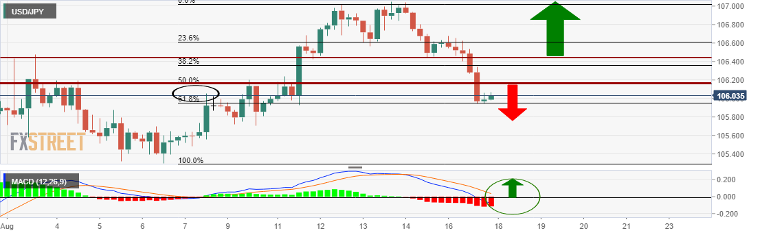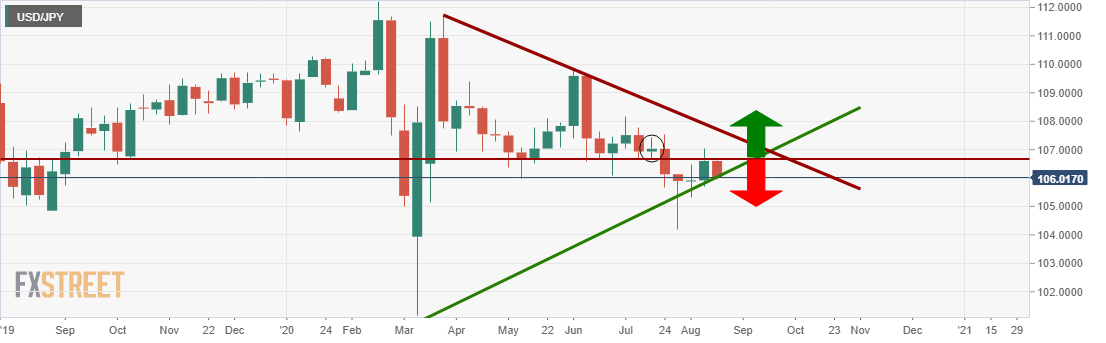 However, on a break of the resistances, with MACD turning bullish, the bulls will be back in charge seeking to extend the late July trend on the higher time frames on a break of the weekly 106.70 resistance.