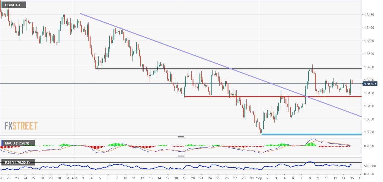 - USD/CAD trades just above flat at 1.3185 on Tuesday.