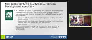 FGIA will field ICC Group A proposed code changes from members through October 30, 2020 and will finalize its proposals by December 2020. Krafka Harkema says some of the focuses of the Group A cycle include egress, fire safety and ventilation.