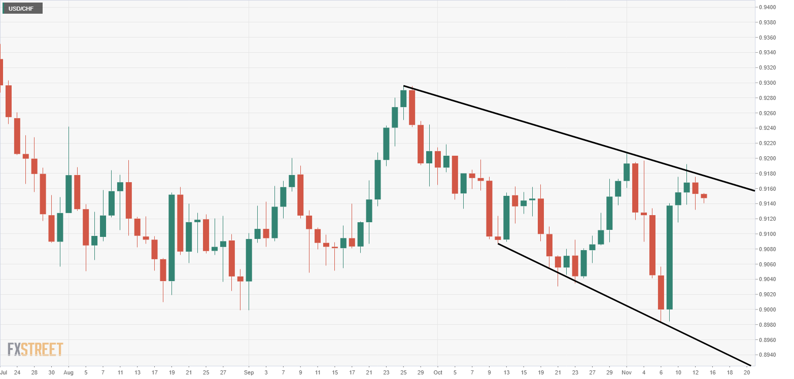 Even so, it is early to call a bullish reversal. That’s because the pair is still trapped in a bearish channel represented by trendlines connecting Sept. 25 and Nov. 2 highs and Oct. 9 and Nov.9 lows.